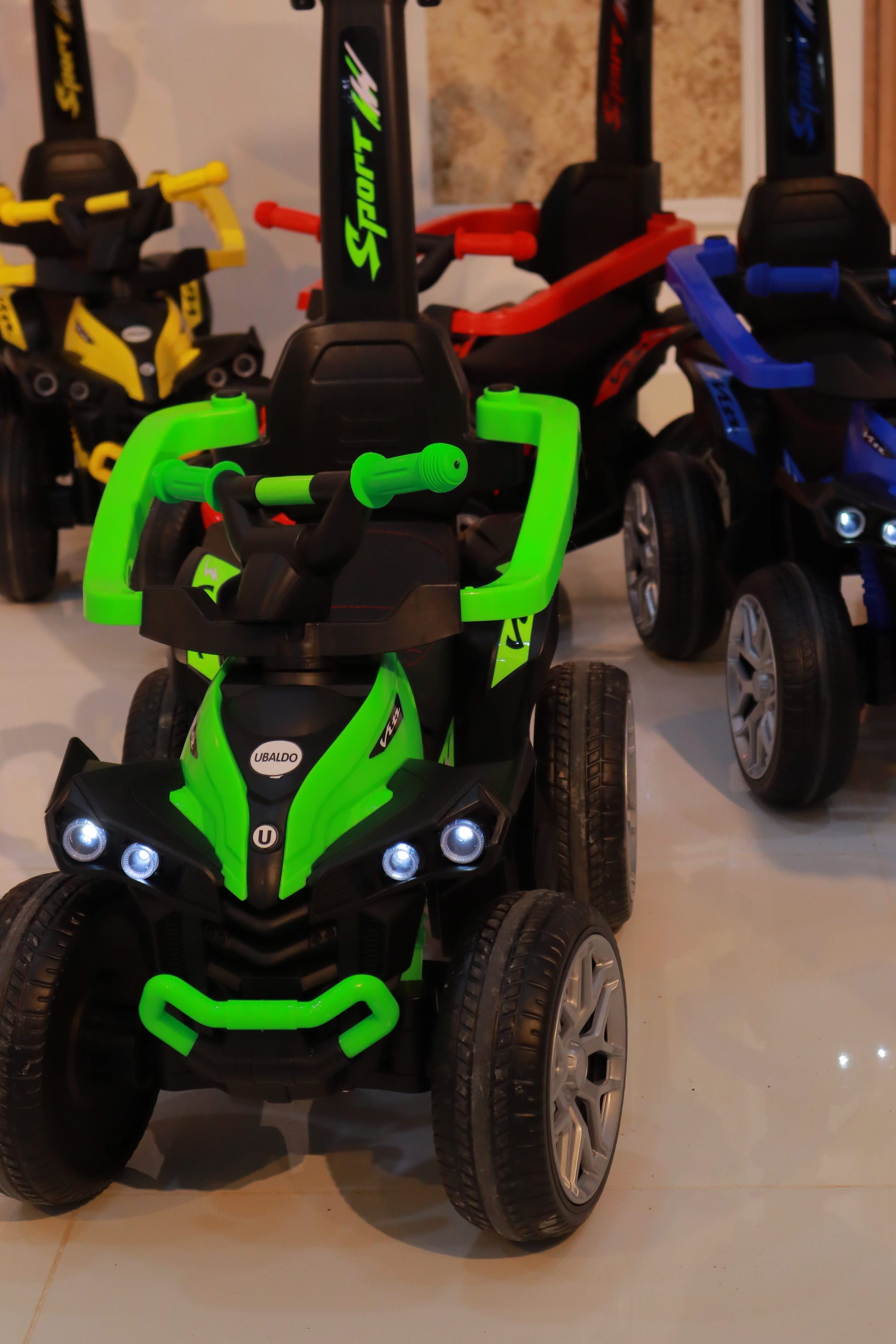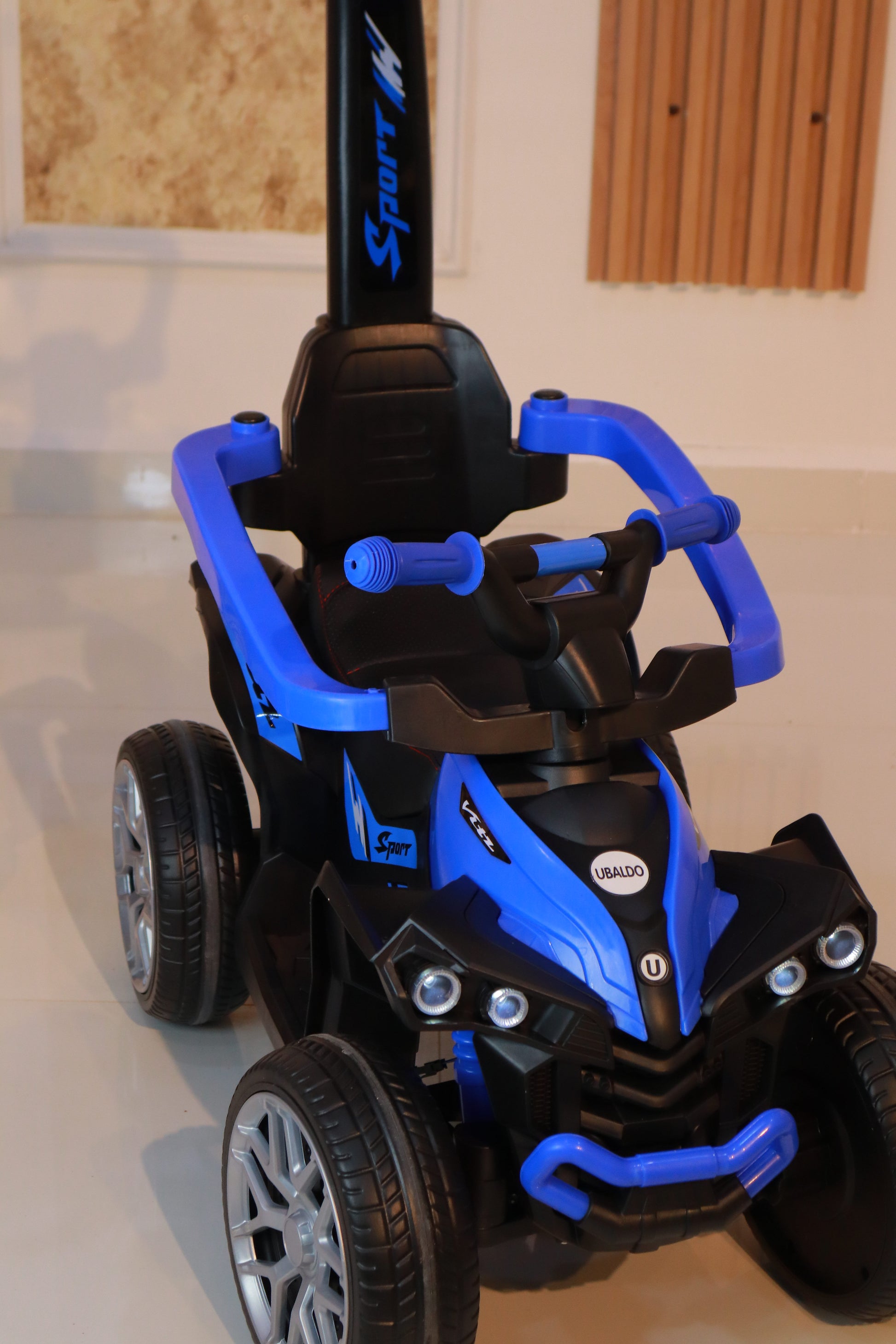 يمكنك التحكم الكامل بالسيارة عن طريق جهاز تحكم عن بُعد (ريموت كنترول)، مما يمنحك راحة البال أثناء التجوال. كما يمكن لطفلك الاستمتاع بتجربة القيادة بنفسه بكل سهولة.