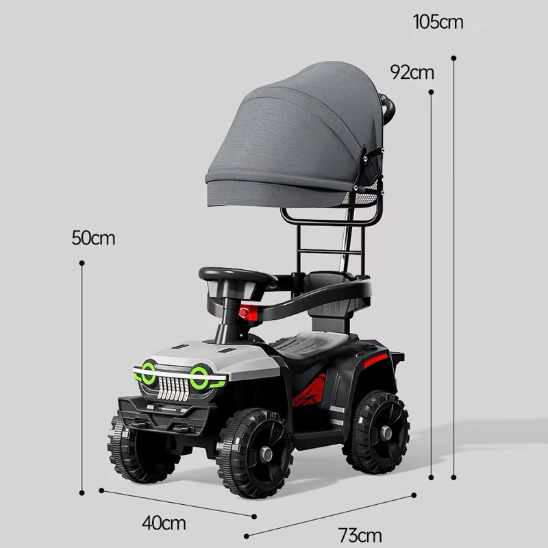 يمكنك التحكم الكامل بالسيارة عن طريق جهاز تحكم عن بُعد (ريموت كنترول)، مما يمنحك راحة البال أثناء التجوال. كما يمكن لطفلك الاستمتاع بتجربة القيادة بنفسه بكل سهولة.